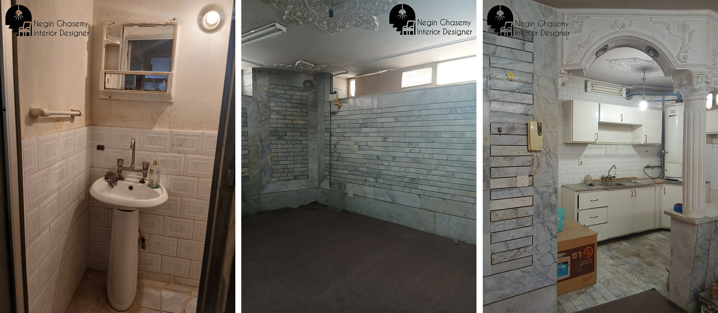 - جانمایی تجهیزات آشپزخانه مطابق تأسیسات: سینک، اجاق و یخچال در موقعیتی قرار گرفتند که مسیرهای لولهکشی و زیرساختها از قبل قابل اجرا باشد.