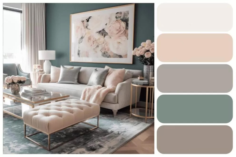 با این پالت رنگی شگفتانگیز حس آرامش و سکون را در فضای نشیمن خود ایجاد کنید. طیفهای نرم و زیبا با هم تکمیل میشوند و فضایی آرام و دلپذیر میسازند.