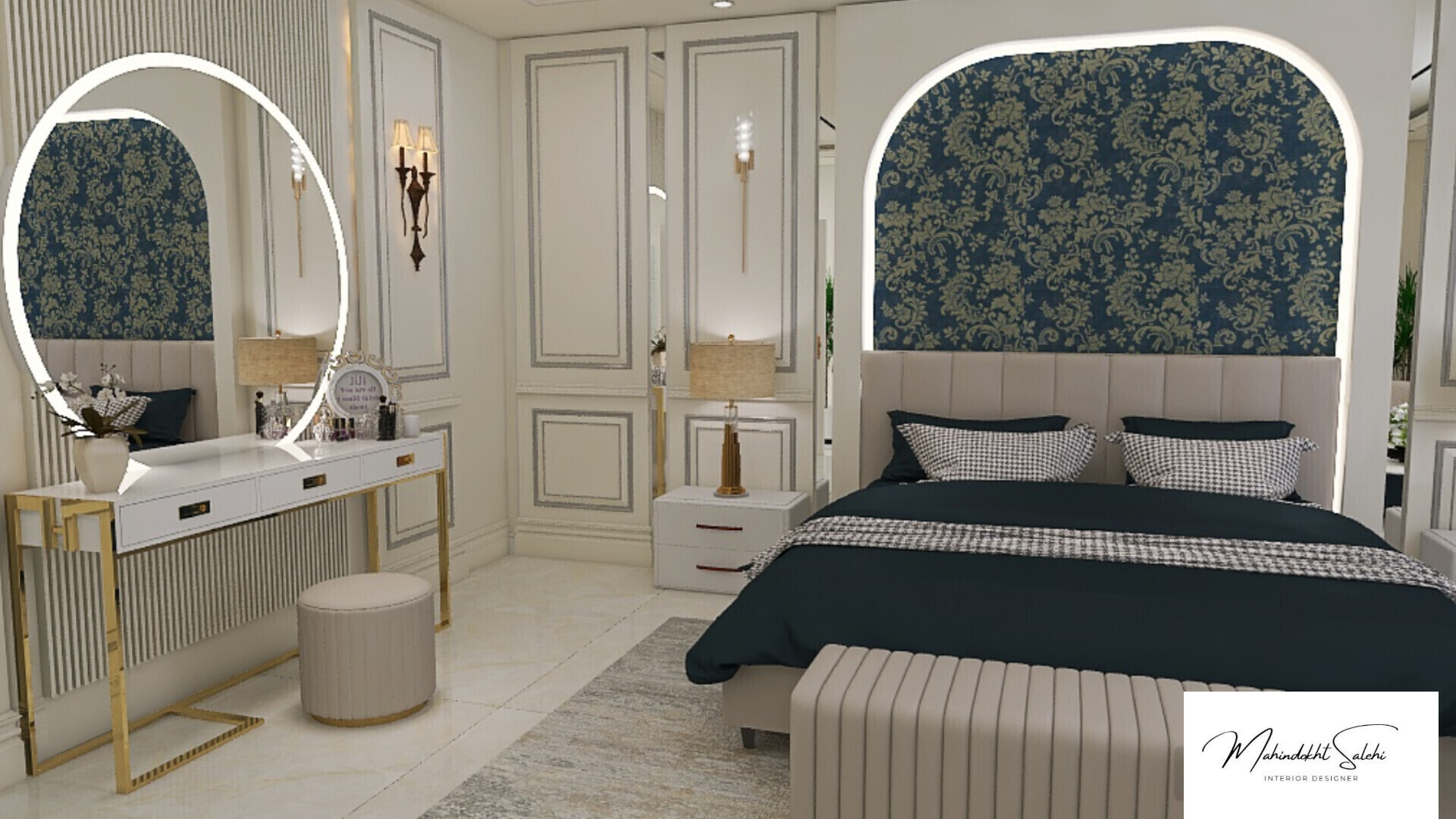 - مشاوره به همراه طراحی سه بعدی، در این حالت اول مشاوره سبک شناسی و رنگ شناسی میشید. بعد فضای منزل شما به صورت سه بعدی طراحی میشه، نحوه چیدمان، رنگ مبلمان و دیوارها، مدل فرش، پرده و لوستر هر سوال دیگه ای که داشته باشید در طراحی سه بعدی بهتون نشون داده میشه. این مورد فقط شامل یک فضا هست. اگر برای اتاق خواب یا اتاق کودک یا آشپزخونه هم طراحی سه بعدی میخواهید، باید برای هر کدوم، هزینه مجزا پرداخت کنید.